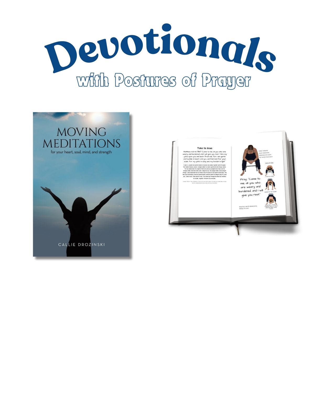Her new book “Moving Meditations” was inspired by the Holy Spirit and born from Callie’s journaling and the messages she shared in her classes. Her 12-year-old daughter and husband played key roles in helping her capture the movement-focused content for the book.