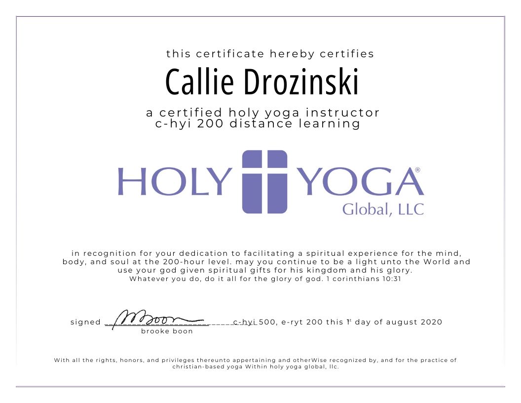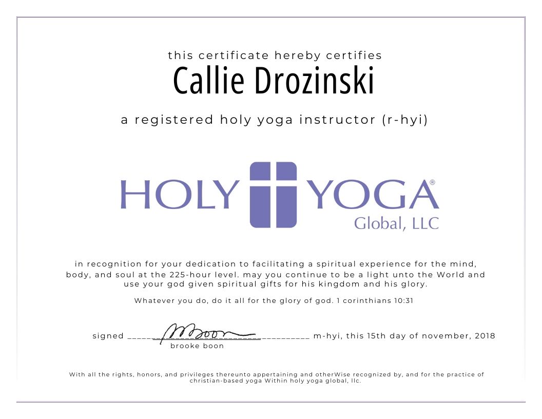Callie is a wife and mom of four kids, a Christian yoga instructor, a personal trainer and, a first-time author.