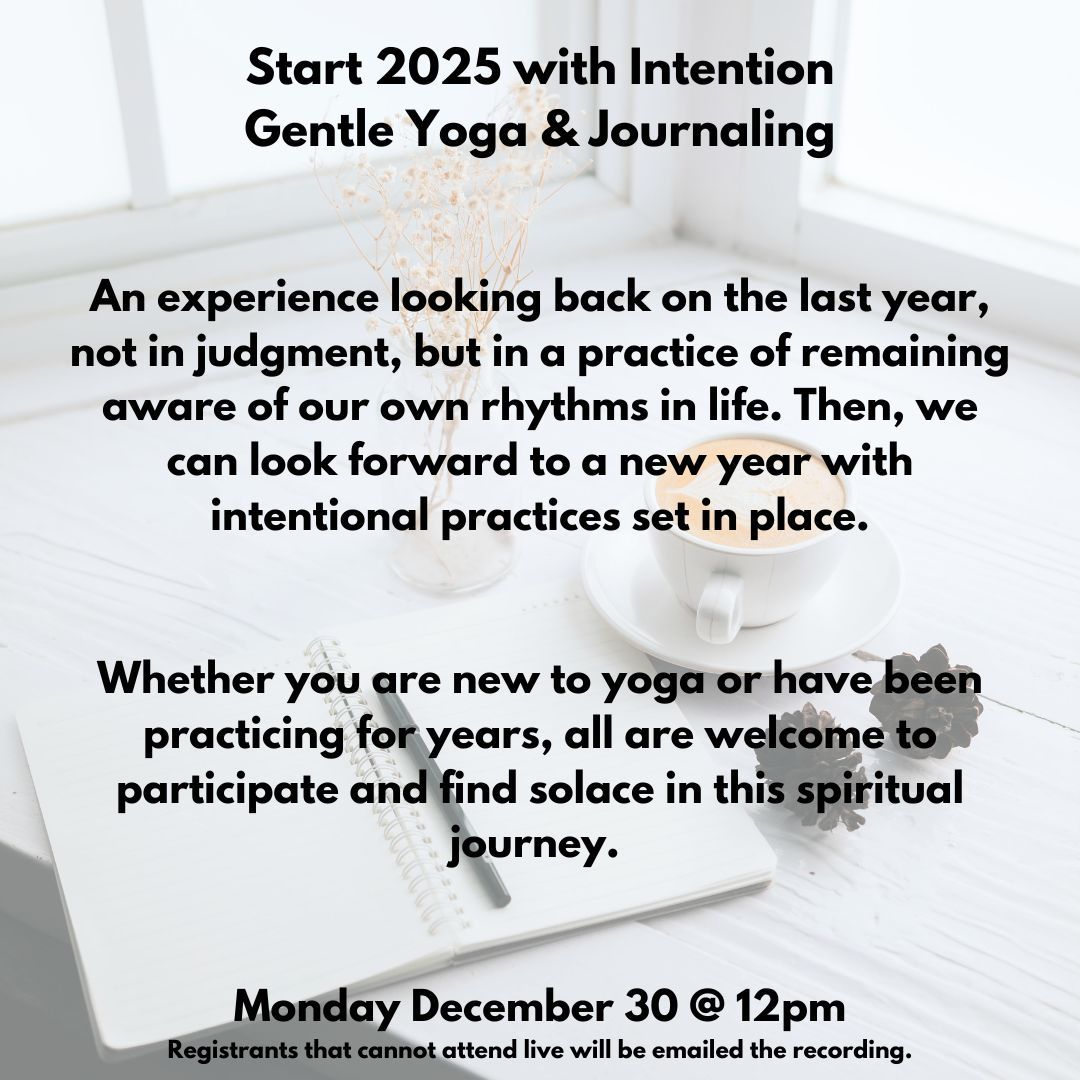 This is a 2 hour event in which we will practice yoga with intermittent pauses to reflect and journal.